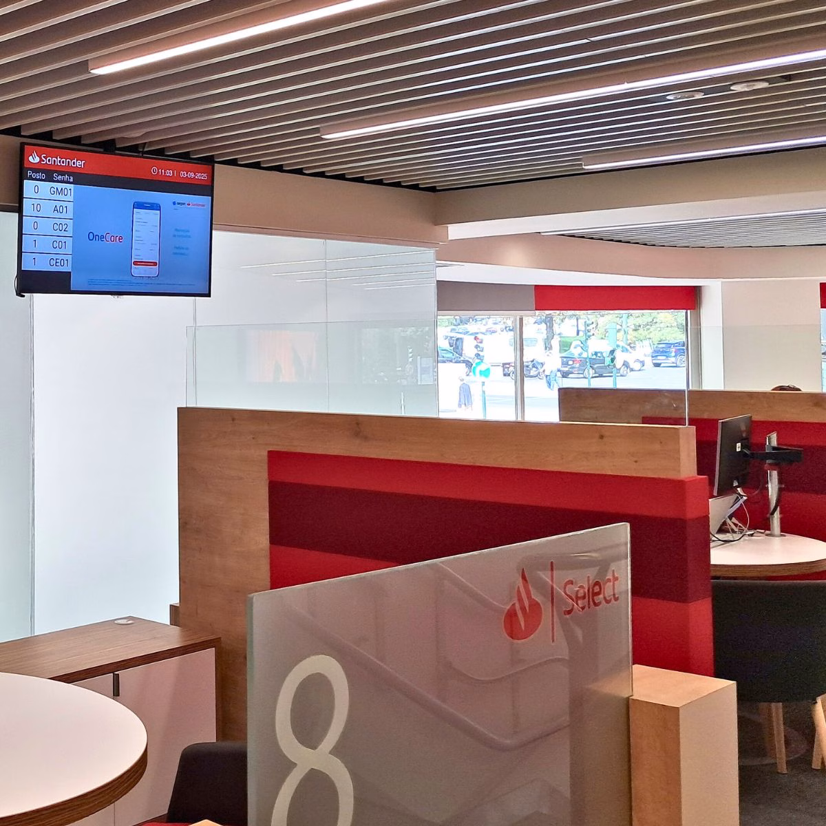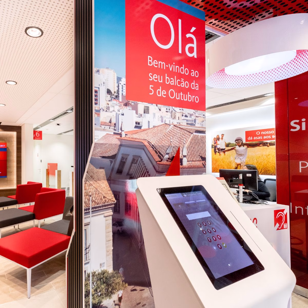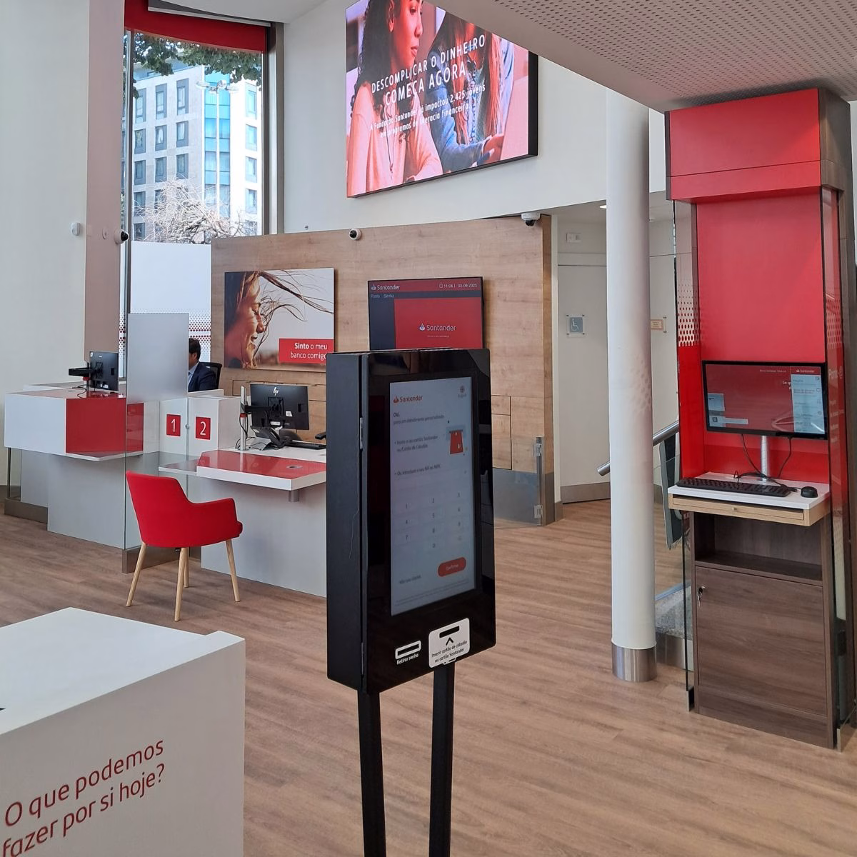 - Implementação em 350 balcões com quiosques de senhas digitais, ecrãs de chamada e integração com sistemas internos.